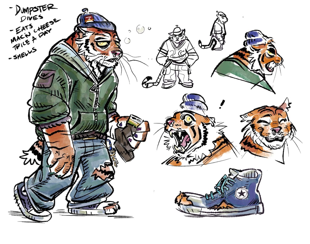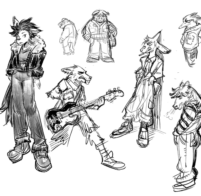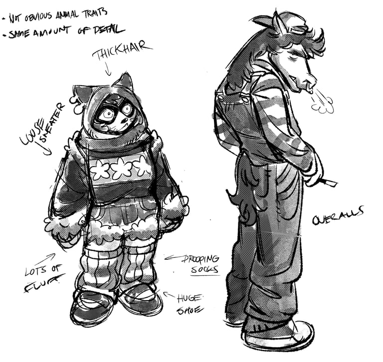 I went with an anthropomorphic style, melding different types of animals
